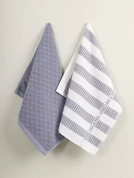 Το σετ πετσέτες κουζίνας retro περιλαμβάνει δύο βαμβακερές πετσέτες, με ζακαρ σχέδιο. Συνδυάζονται άψογα μεταξύ τους, καθώς η μια είναι μονόχρωμη γκρι με ζακάρ σχέδιο με ρόμβους, ενώ η δεύτερη έχει ένα minimal ριγέ σχέδιο σε λευκό και γκρι χρώμα. Είναι πολύ πρακτικές στη χρήση τους καθώς είναι ιδιαίτερα απορροφητικές και έχουν μεγάλη διάσταση. Το σετάκι με τις υπέροχες και ποιοτικές πετσέτες retro, με τοn όμορφο συνδυασμό χρωμάτων και σχεδίων, θα ταιριάξει εύκολα σε κάθε κουζίνα, φέρνοντας μια νότα φρεσκάδας και ανανέωσης. Χαρείτε το στην κουζίνα σας, ή χαρίστε το σε φίλους που αγαπούν να έχουν όμορφα και πρακτικά ταυτόχρονα πραγματάκια στην καθημερινότητά τους.