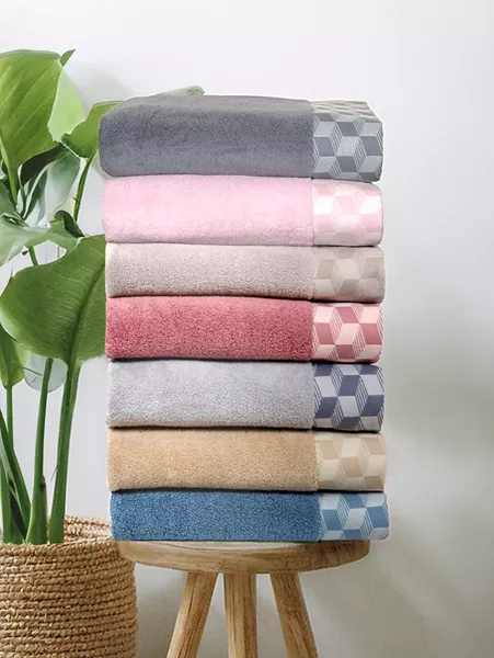 Βαμβακερή πετσέτα jacquard από 100% βαμβάκι zero twist 600 gsm. Τα βαμβακερά λευκά είδη zero twist ύφαίνονται με νήματα των οποίων οι ίνες δεν συστρέφονται πριν υφανθούν, προσφέροντας εξαιρετική απορροφητικότητα και μια αίσθηση βελούδινης απαλότητας στο δέρμα σας. Με πυκνότητα 600 gsm, οι πετσέτες είναι ιδιαίτερα παχιές και πλούσιες, επιβεβαιώνοντας την υψηλή τους ποιότητα και την αντοχή τους στον χρόνο, χωρίς να χάνουν την αφράτη τους υφή μετά από κάθε πλύση. Μια πετσέτα εξαιρετικής απαλότητας, αφράτη και μαλακή για ευχάριστη αίσθηση καθημερινά μετά το μπάνιο ή το ντους.