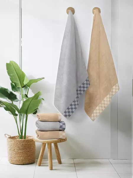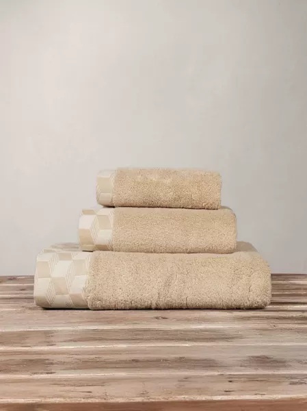 Η βαμβακερή πετσέτα luxe mustard beige έχει ένα όμορφο διαχρονικό σχέδιο με ζακάρ ύφανση με γεωμετρικό μοτίβο στο τελείωμά της. Η κομψή μονόχρωμη επιφάνεια του κυρίως σώματος της πετσέτας σε μοντέρνο μουσταρδί χρώμα, συνδυάζεται αρμονικά με τα χρώματα της jacquard μπορντούρας, δίνοντας μια σύγχρονη και με δυναμική εμφάνιση πετσέτα. Αναβαθμίστε την εμπειρία του μπάνιου σας με τις πετσέτες "luxe", έναν συνδυασμό απόλυτης πολυτέλειας και λειτουργικότητας. Σχεδιασμένες με έμφαση στην ποιότητα και το στυλ, είναι η ιδανική προσθήκη για κάθε μπάνιο.