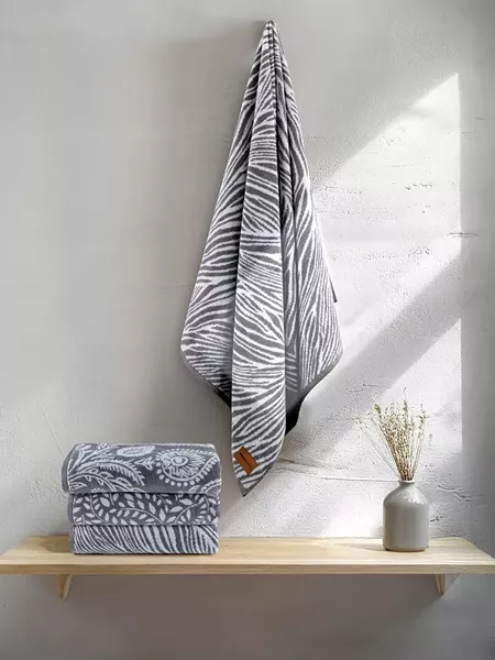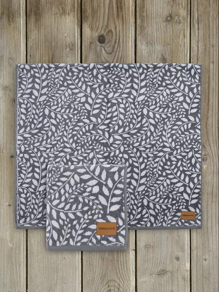 Οι Βαμβακερές πετσέτες ivy έχουν ρευστό σχέδιο με λεπτεπίλεπτα φύλλα και κλαδιά, που δημιουργούν μια εντυπωσιακή αίσθηση κίνησης και ενέργειας. Οι λεπτές γραμμές και οι διακριτικές καμπύλες δημιουργούν μια ατμόσφαιρα γαλήνης και ηρεμίας, ενώ παράλληλα προσδίδουν μια πινελιά κομψότητας και φινέτσας στο μπάνιο σας. Το χρώμα τους που είναι ένα δυναμικό γκρι με το σχέδιο να αναπτύσεται με λευκές γραμμές, έρχεται σε τέλεια αντίθεση με το floral σχέδιο, δημιουργώντας μια αρμονική και μοντέρνα αισθητική που θα δώσει έναν αέρα φρεσκάδας στο μπάνιο σας. Το βελούρ φινίρισμα προσδίδει μια απίστευτη αίσθηση απαλότητας και πολυτέλειας στις πετσέτες, αναβαθμίζοντας τόσο την εμπειρία του μπάνιου σας όσο και την καθημερινότητά σας.