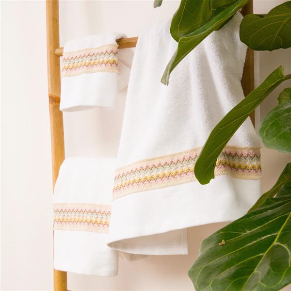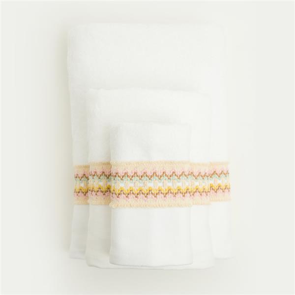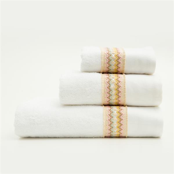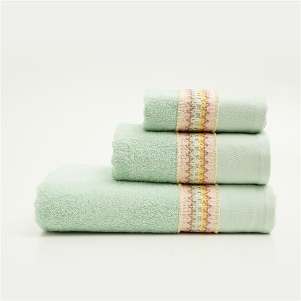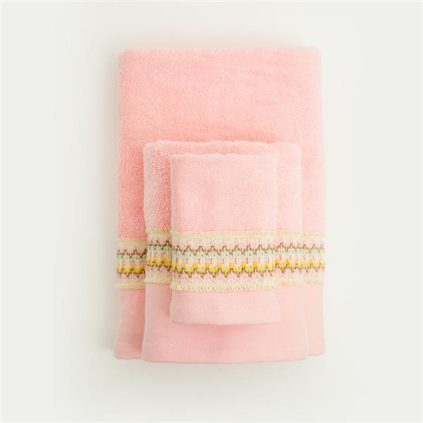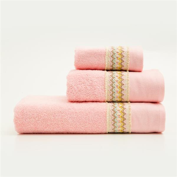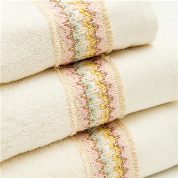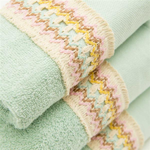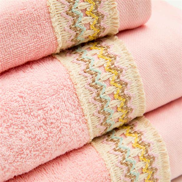 Σετ πετσέτες 3 τεμαχίων, μπάνιου, προσώπου και χειρός, από ύφασμα φροτέ, πενιέ, 100% βαμβακερό, με διακοσμητική βαμβακερή,πλεχτή δαντέλα.Διατίθεται σε 4 χρώματα.