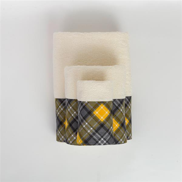 Σετ πετσέτες 2 τεμαχίων, προσώπου και χειρός, από ύφασμα φροτέ, πενιέ, 100% βαμβακερό, με διακοσμητική φάσα ύφασμα.Διατίθεται σε 3 χρώματα.