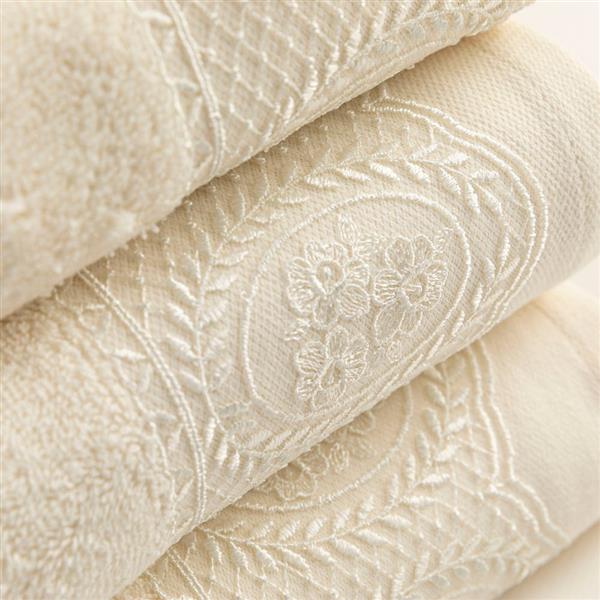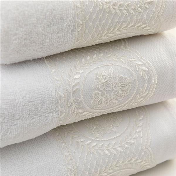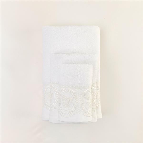 Σετ πετσέτες 2 τεμαχίων, προσώπου και χειρός, από ύφασμα φροτέ, πενιέ, 100% βαμβακερό, με διακοσμητική δαντέλα. Διατίθεται σε 2 χρώματα.