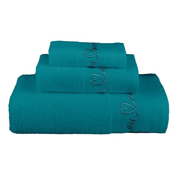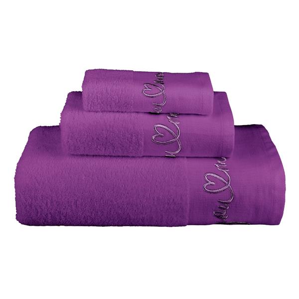 Σετ πετσέτες 3 τεμαχίων, μπάνιου, προσώπου και χειρός, από ύφασμα φροτέ, πενιέ, 100% βαμβακερό, με κέντημα.Διατίθεται σε 4 χρώματα.