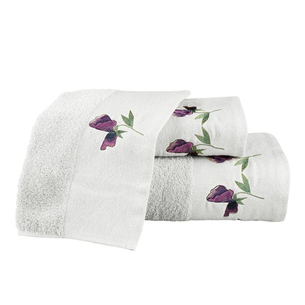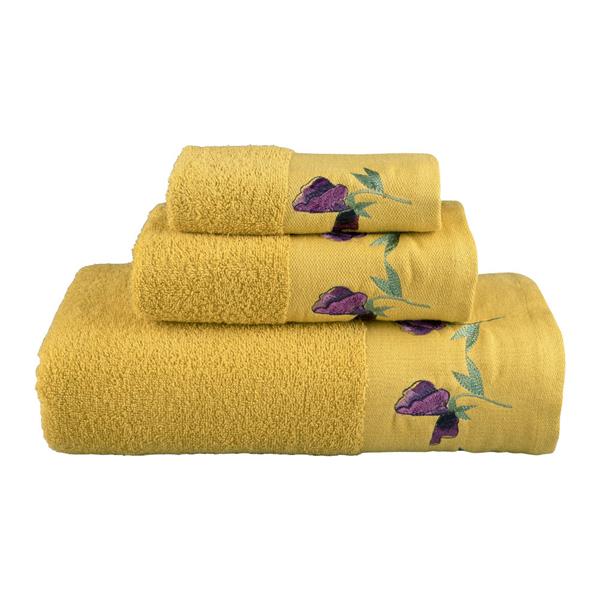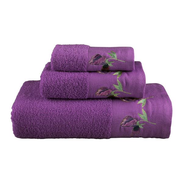 Σετ πετσέτες 3 τεμαχίων, μπάνιου, προσώπου και χειρός, από ύφασμα φροτέ, πενιέ, 100% βαμβακερό, με κέντημα.Διατίθεται σε 4 χρώματα.