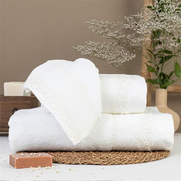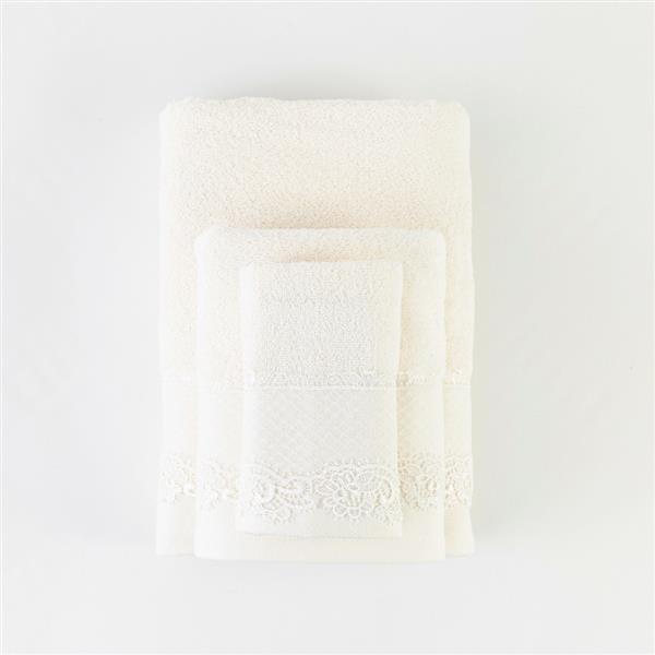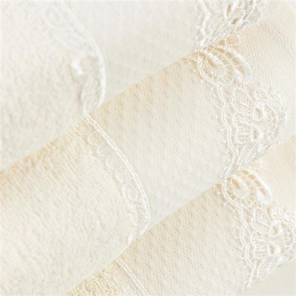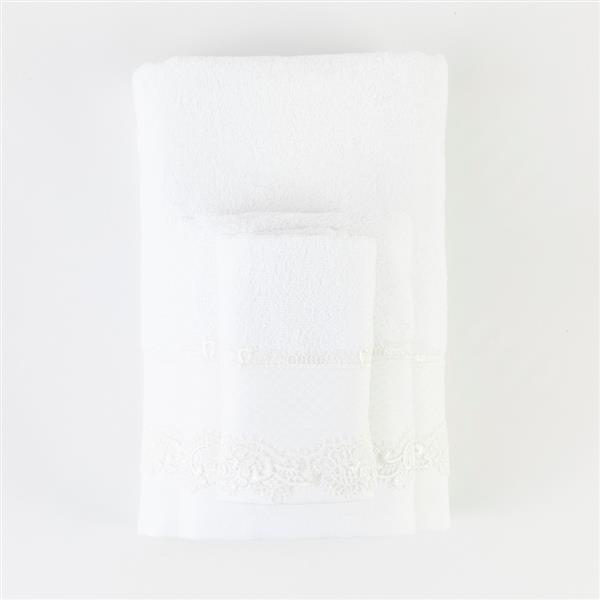 Σετ πετσέτες 2 τεμαχίων, προσώπου και χειρός, από ύφασμα φροτέ, πενιέ, 100% βαμβακερό, με διακοσμητική δαντέλα. Διατίθεται σε 2 χρώματα.