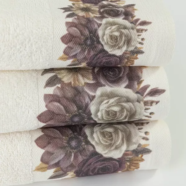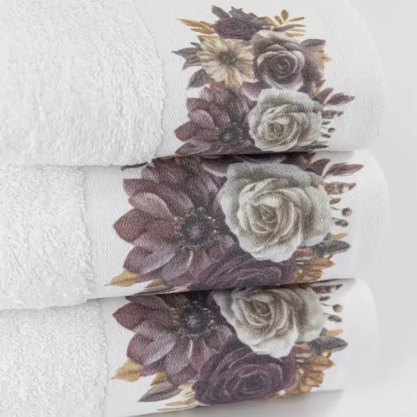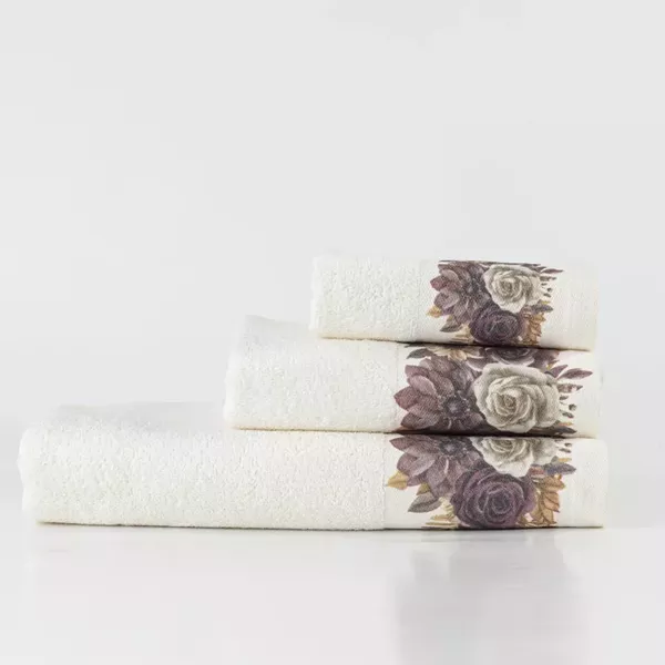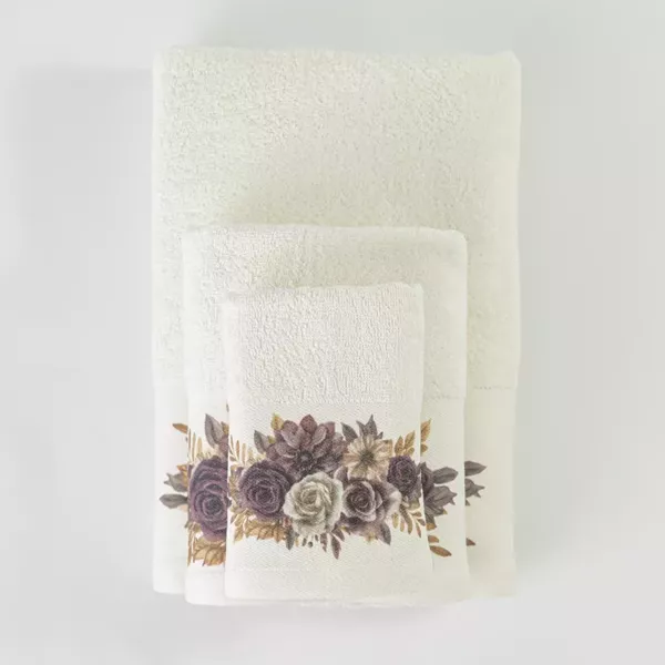 Σετ πετσέτες 3 τεμαχίων, μπάνιου, προσώπου και χειρός, από ύφασμα φροτέ, πενιέ, 100% βαμβακερό, με ψηφιακή εκτύπωση.Διατίθεται σε 2 χρώματα.
