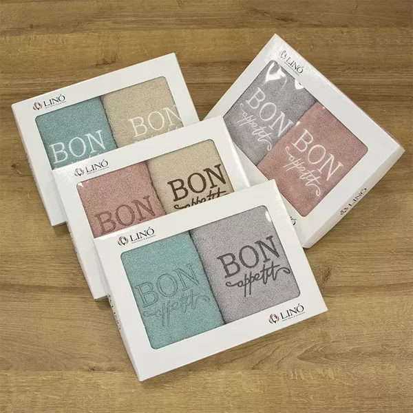 Σετ πετσέτες BON APETIT από την εταιρεία Linohome! Αποτελείται από δύο πετσέτες χεριών αρμονικά συνδυασμένες σε χρώματα και σχέδια ώστε να προσδίδει ομοιoμορφία και στυλ σε κάθε χώρο.Αφεθείτε στην απαλότητα και την ευχάριστη αίσθηση των πετσετών REFUGIO για την καθημερινή χρήση στην κουζίνα σας!Τα τεμάχια που αποτελούν το σετ, είναι κατασκευασμένα από βαμβακι πενιέ 500gsm για μέγιστη απορροφητικότητα και απαλότητα! Διατίθεται σε όμορφο πρακτικό κουτάκι για να το προσφέρετε ως δώρο σε αγαπημένα σας πρόσωπα!