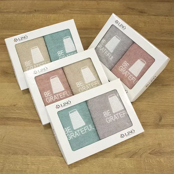 Σετ πετσέτες BE GRATEFUL από την εταιρεία Linohome! Αποτελείται από δύο πετσέτες χεριών αρμονικά συνδυασμένες σε χρώματα και σχέδια ώστε να προσδίδει ομοιoμορφία και στυλ σε κάθε χώρο.Αφεθείτε στην απαλότητα και την ευχάριστη αίσθηση των πετσετών REFUGIO για την καθημερινή χρήση στην κουζίνα σας!Τα τεμάχια που αποτελούν το σετ, είναι κατασκευασμένα από βαμβακι πενιέ 500gsm για μέγιστη απορροφητικότητα και απαλότητα! Διατίθεται σε όμορφο πρακτικό κουτάκι για να το προσφέρετε ως δώρο σε αγαπημένα σας πρόσωπα!