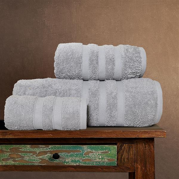 Το σετ αποτελείται από τρεις πετσέτες, μία χεριών, μία προσώπου και μία μπάνιου.