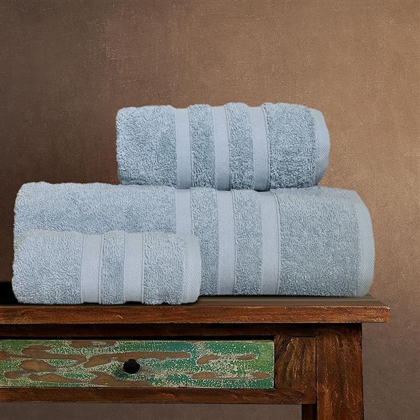 Το σετ αποτελείται από τρεις πετσέτες, μία χεριών, μία προσώπου και μία μπάνιου.