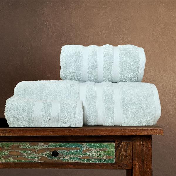 Το σετ αποτελείται από τρεις πετσέτες, μία χεριών, μία προσώπου και μία μπάνιου.