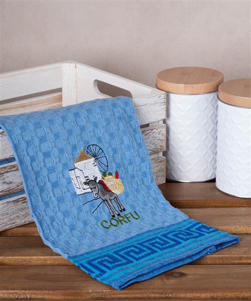 Σετ 12 τεμαχίων ποτηρόπανα γκοφρέ (50cm x 70cm) μπλέ γαίδαρος CORFU