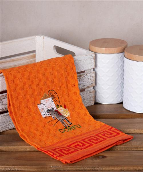 Σετ 12 τεμαχίων ποτηρόπανα γκοφρέ (50cm x 70cm) πορτοκαλί γαίδαρος CORFU