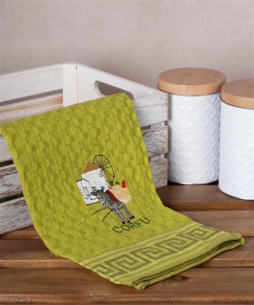 Σετ 12 τεμαχίων ποτηρόπανα γκοφρέ (50cm x 70cm) πράσινο γαίδαρος CORFU