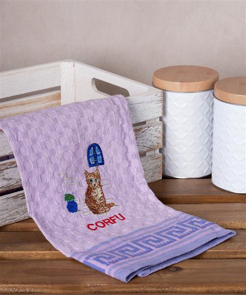 Σετ 12 τεμαχίων ποτηρόπανα γκοφρέ (50cm x 70cm) λιλά γάτα CORFU
