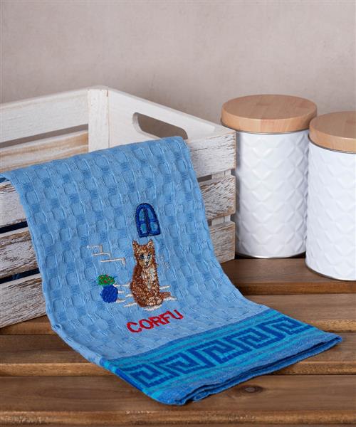 Σετ 12 τεμαχίων ποτηρόπανα γκοφρέ (50cm x 70cm) μπλέ γάτα CORFU