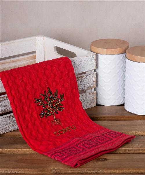 Σετ 12 τεμαχίων ποτηρόπανα γκοφρέ (50cm x 70cm) κόκκινο γλάστρα CORFU
