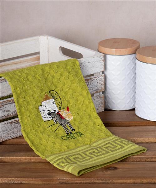 Σετ 12 τεμαχίων ποτηρόπανα γκοφρέ (50cm x 70cm) πράσινο γαίδαρος CRETA