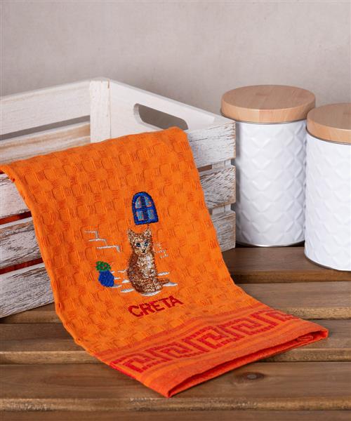 Σετ 12 τεμαχίων ποτηρόπανα γκοφρέ (50cm x 70cm) πορτοκαλί γάτα CRETA