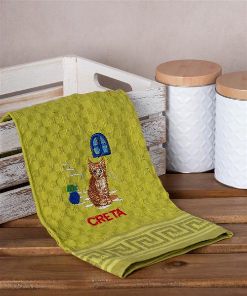 Σετ 12 τεμαχίων ποτηρόπανα γκοφρέ (50cm x 70cm) πράσινο γάτα CRETA