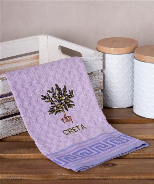 Σετ 12 τεμαχίων ποτηρόπανα γκοφρέ (50cm x 70cm) λιλά γλάστρα CRETA