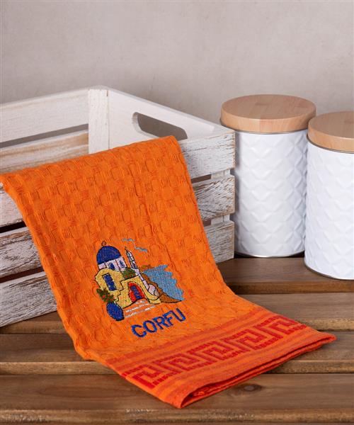 Σετ 12 τεμαχίων ποτηρόπανα γκοφρέ (50cm x 70cm) πορτοκαλί εκκλησία CORFU