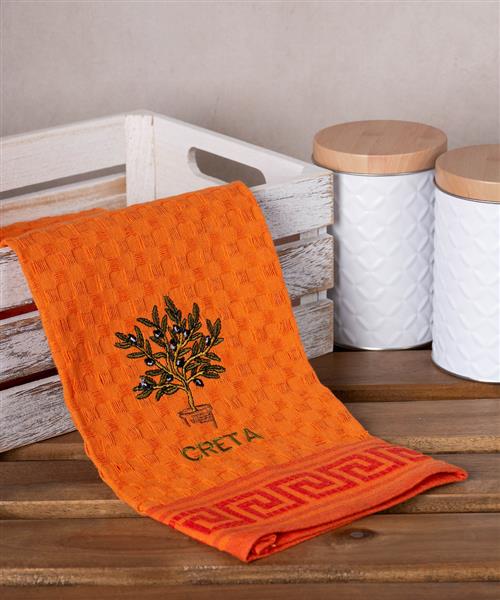 Σετ 12 τεμαχίων ποτηρόπανα γκοφρέ (50cm x 70cm) πορτοκαλί γλάστρα CRETA