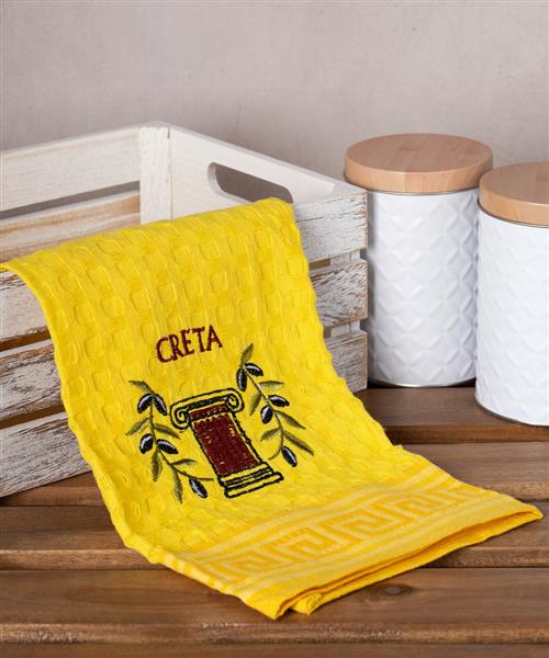 Σετ 12 τεμαχίων ποτηρόπανα γκοφρέ (50cm x 70cm) κίτρινο κίονας CRETA
