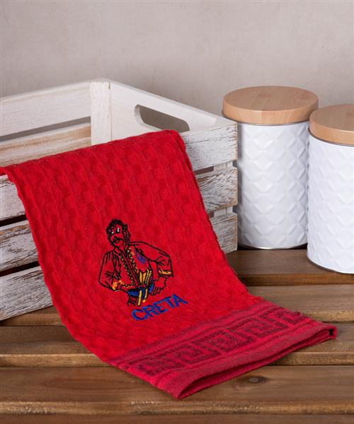 Σετ 12 τεμαχίων ποτηρόπανα γκοφρέ (50cm x 70cm) κόκκινο κρητικός CRETA