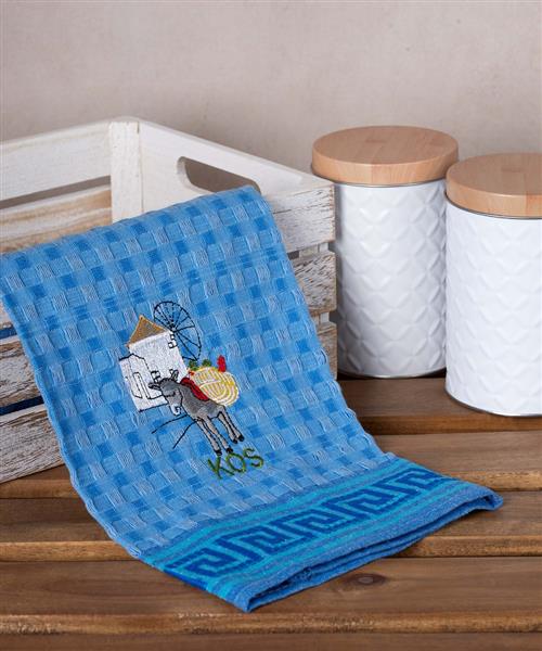 Σετ 12 τεμαχίων ποτηρόπανα γκοφρέ (50cm x 70cm) μπλέ γαίδαρος KOS