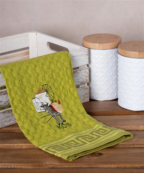 Σετ 12 τεμαχίων ποτηρόπανα γκοφρέ (50cm x 70cm) πράσινο γαίδαρος KOS