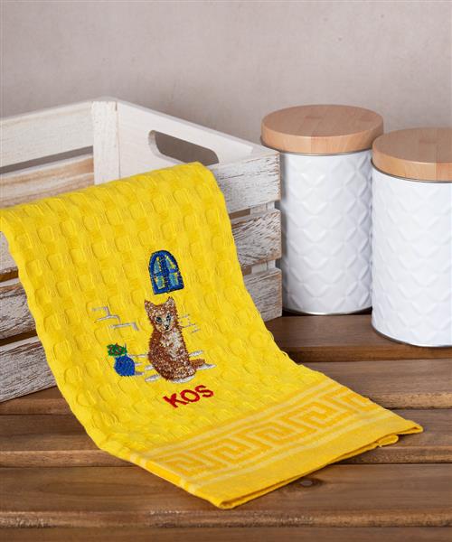 Σετ 12 τεμαχίων ποτηρόπανα γκοφρέ (50cm x 70cm) κίτρινο γάτα KOS