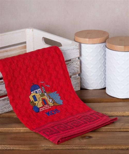 Σετ 12 τεμαχίων ποτηρόπανα γκοφρέ (50cm x 70cm) κόκκινο εκκλησία KOS