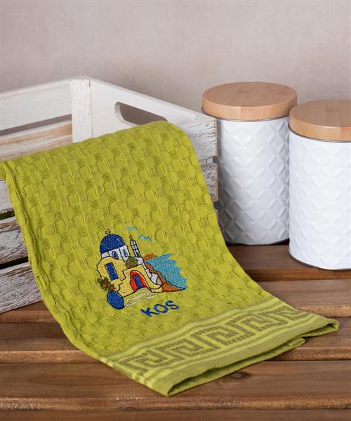 Σετ 12 τεμαχίων ποτηρόπανα γκοφρέ (50cm x 70cm) πράσινο εκκλησία KOS