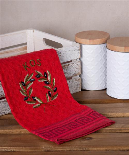Σετ 12 τεμαχίων ποτηρόπανα γκοφρέ (50cm x 70cm) κόκκινο στεφάνι KOS