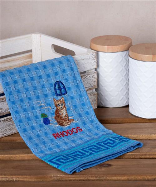 Σετ 12 τεμαχίων ποτηρόπανα γκοφρέ (50cm x 70cm) μπλέ γάτα RHODES