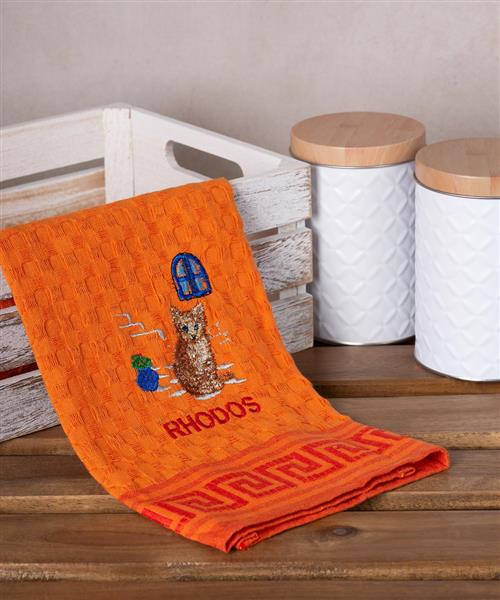 Σετ 12 τεμαχίων ποτηρόπανα γκοφρέ (50cm x 70cm) πορτοκαλί γάτα RHODES