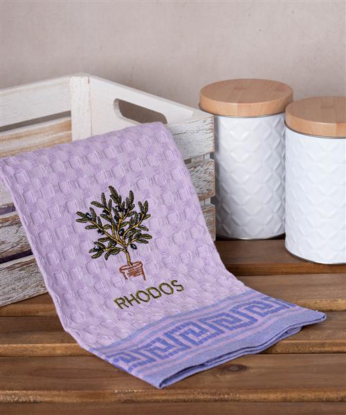 Σετ 12 τεμαχίων ποτηρόπανα γκοφρέ (50cm x 70cm) λιλά γλάστρα RHODES