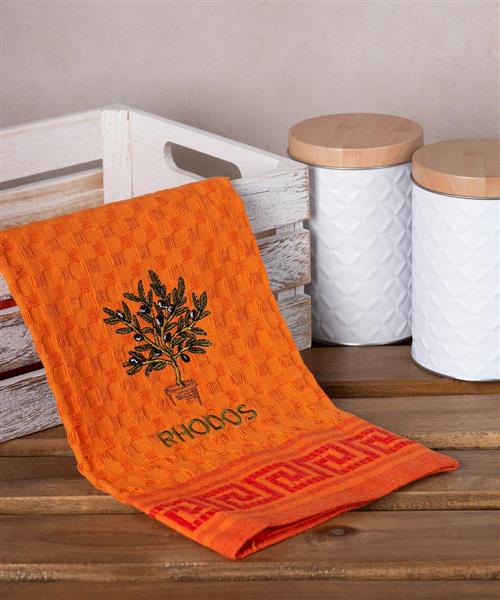 Σετ 12 τεμαχίων ποτηρόπανα γκοφρέ (50cm x 70cm) πορτοκαλί γλάστρα RHODES