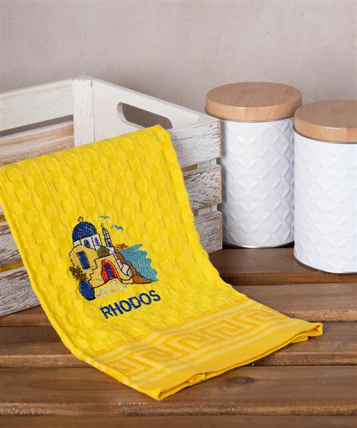 Σετ 12 τεμαχίων ποτηρόπανα γκοφρέ (50cm x 70cm) κίτρινο εκκλησία RHODES