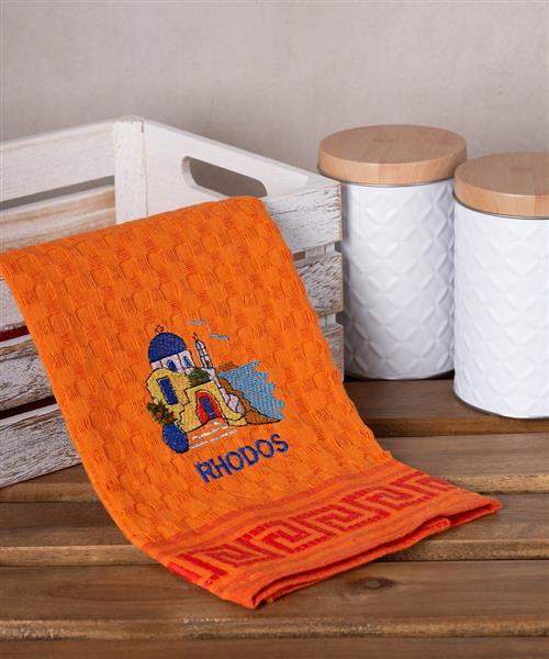 Βαμβακερά ποτηρόπανα με κέντημα και τοπωνύμιο