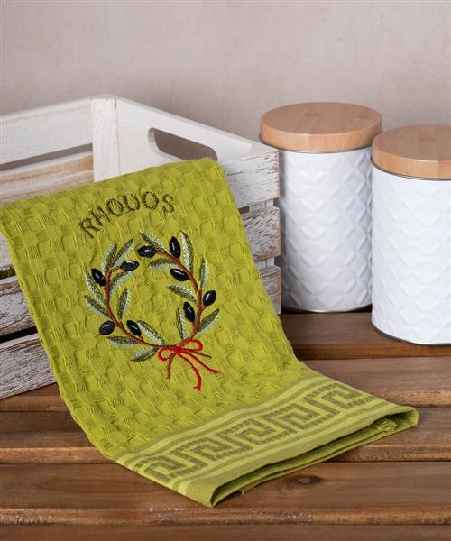 Σετ 12 τεμαχίων ποτηρόπανα γκοφρέ (50cm x 70cm) πράσινο στεφάνι RHODES
