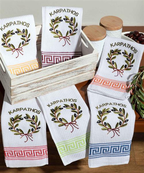 Σετ 12 τεμαχίων ποτηρόπανα (45cm x 65cm) στεφάνι KARPATHOS