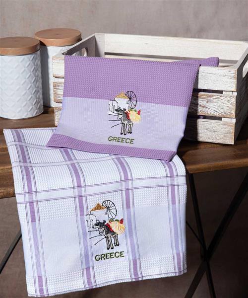Σετ 2 τεμαχίων ποτηρόπανα (50cm x 70cm) ανεμόμυλος λιλά GREECE