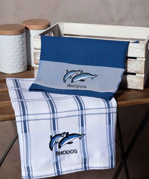Σετ 2 τεμαχίων ποτηρόπανα (50cm x 70cm) μπλέ δελφίνι RHODES
