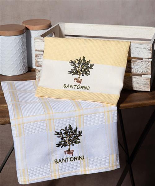 Σετ 2 τεμαχίων ποτηρόπανα (50cm x 70cm) γλάστρα κίτρινο SANTORINI
