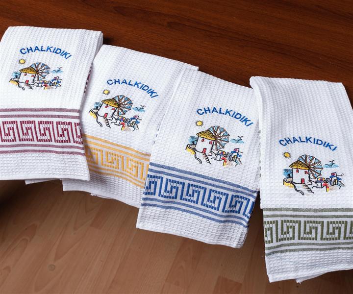 Σετ 12 τεμαχίων ποτηρόπανα (45cm x 65cm) ανεμόμυλος CHALKIDIKI