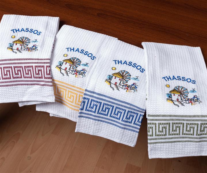 Σετ 12 τεμαχίων ποτηρόπανα (45cm x 65cm) ανεμόμυλος THASSOS
