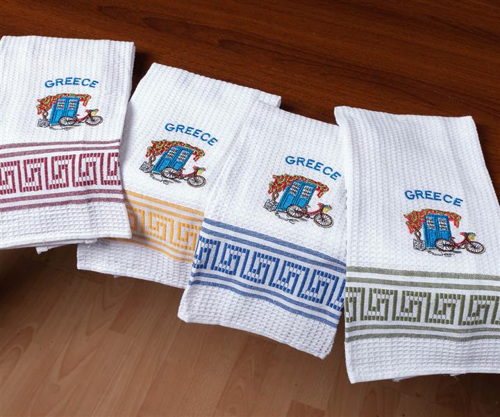 Σετ 12 τεμαχίων ποτηρόπανα (45cm x 65cm) ποδήλατο GREECE